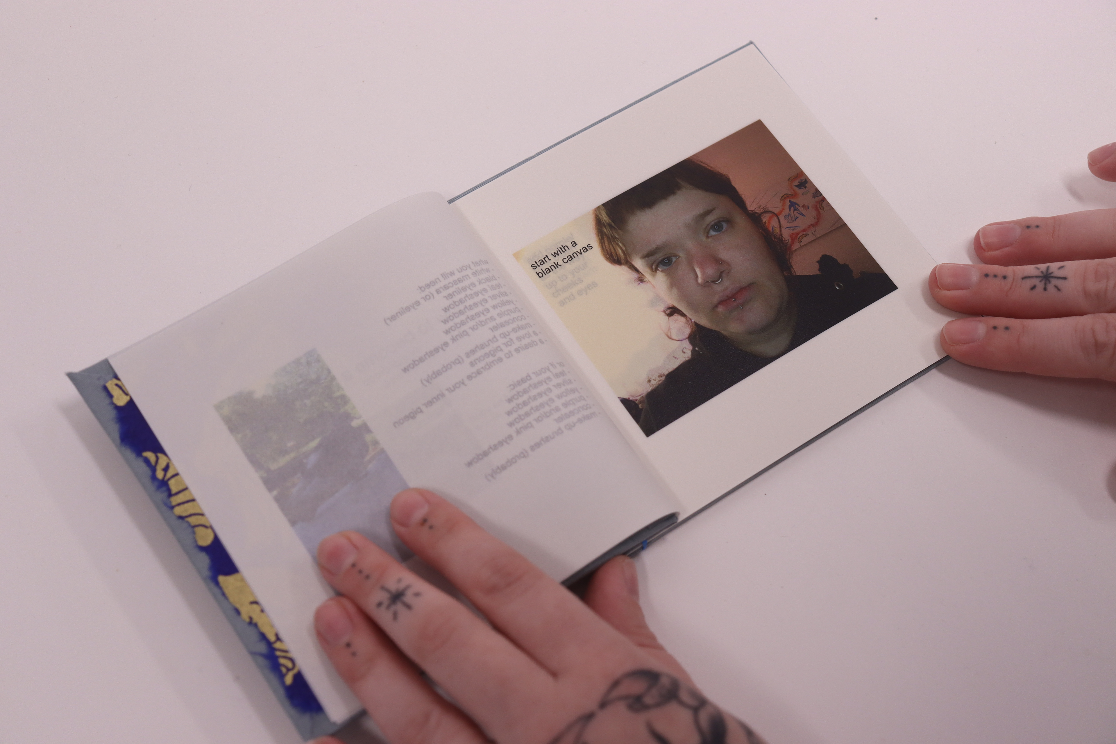 Handbound Book: Decorative paper, thread, book board, vellum, PVA glue, beeswax